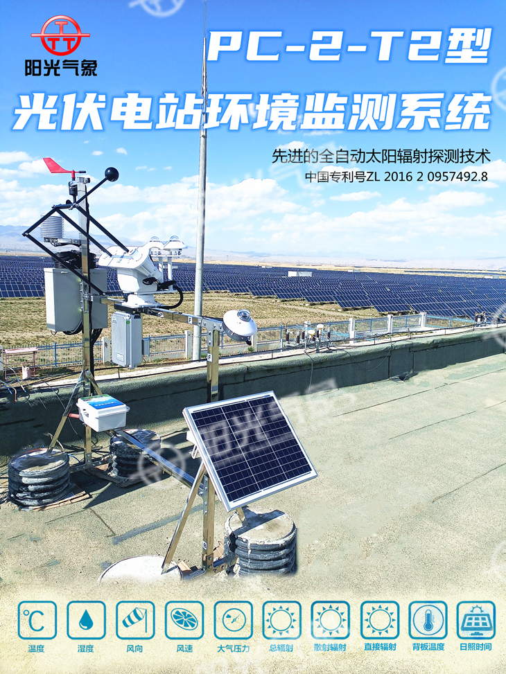 PC-2-T2型光伏電站環(huán)境監(jiān)測系統(tǒng)是我公司按照氣象WMO組織氣象觀測標準及IEC、國電網(wǎng)公司企標Q/GDW 617-2011《光伏電站接入電網(wǎng)技術(shù)規(guī)定》、國電網(wǎng)公司企標Q/GDW 618-2011《光伏電站接入電網(wǎng)測試規(guī)程》等規(guī)范標準設(shè)計生產(chǎn)研發(fā)的新型光伏電站環(huán)境監(jiān)測站,同時也符合《并網(wǎng)光伏發(fā)電系統(tǒng)工程驗收技術(shù)規(guī)范》等相關(guān)技術(shù)要求。本系統(tǒng)可觀測的環(huán)境輻射要素有:環(huán)境溫度、環(huán)境濕度、組件溫度、風速、風向、氣壓、傾斜總輻射、日照時數(shù)、水平總輻射、太陽直接輻射、太陽散射輻射等指標。具有性能穩(wěn)定,檢測精度高,完全無人值守等特點,可滿足光伏電站環(huán)境氣象監(jiān)測、太陽輻射監(jiān)測等相關(guān)要求。