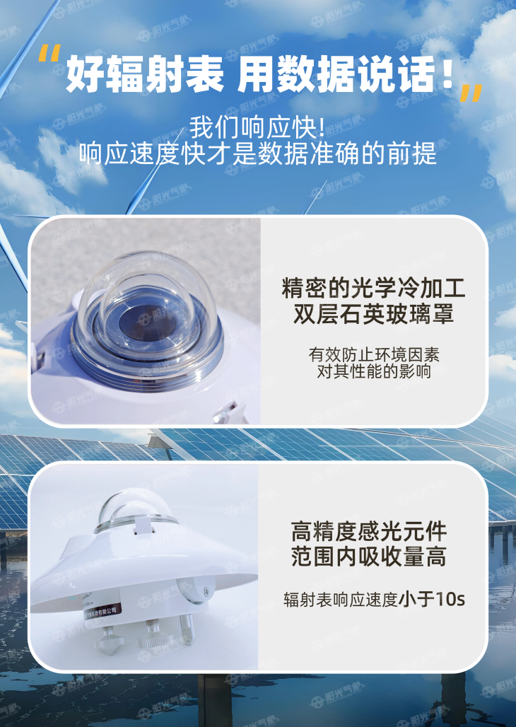 2. 響應快:響應時間≤10S,對太陽輻射的微小變化都能迅速響應,確保數(shù)據(jù)的實時性和準確性。