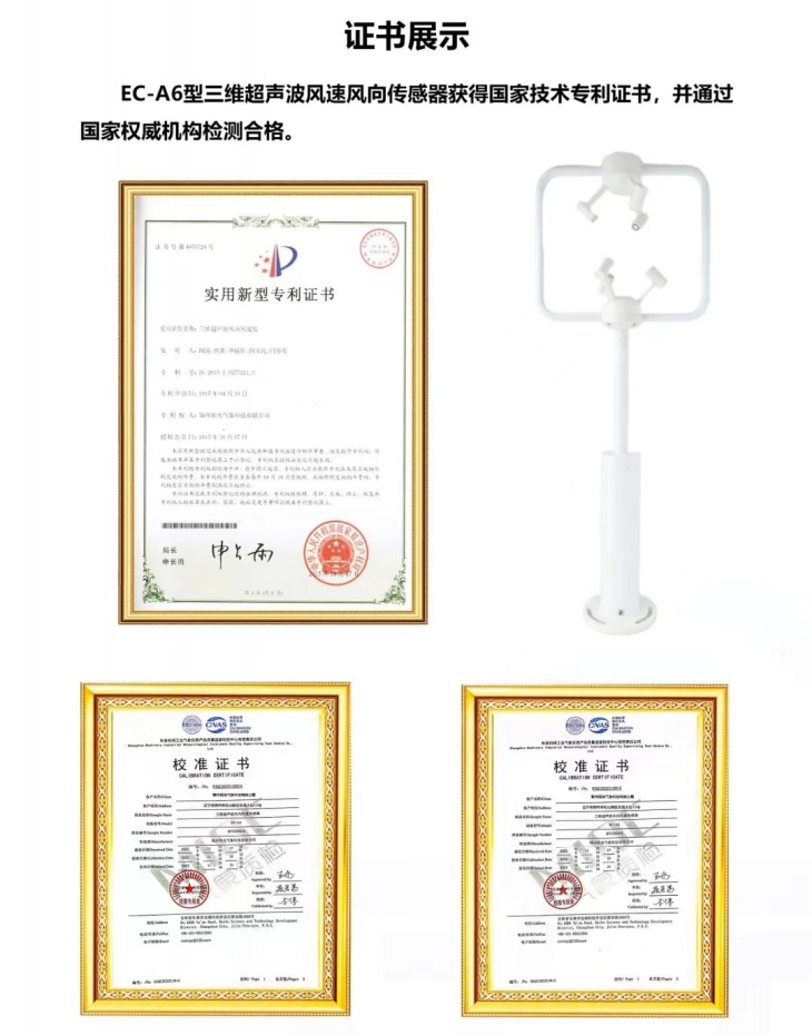 EC-A6型三維超聲波風(fēng)速風(fēng)向傳感器采用先進(jìn)的超聲波測量技術(shù),獨特的兩根支撐桿結(jié)構(gòu)設(shè)計,大大減小了風(fēng)阻的影響,提升了測量的精度。它具有全金屬材質(zhì),沒有任何移動部件,堅固耐用的特點,可以同時測量水平和垂直方向的風(fēng)向, X/Y/Z軸風(fēng)速(即U、V、W矢量輸出),聲溫、聲速等參數(shù)。適應(yīng)在各種環(huán)境下,全天候、長久的正常工作,為各領(lǐng)域的氣象監(jiān)測提供可靠數(shù)據(jù)。三維超聲波風(fēng)向風(fēng)速傳感器用來測量近地風(fēng)向、風(fēng)速。廣泛應(yīng)用于城市環(huán)境監(jiān)測、風(fēng)力發(fā)電、氣象監(jiān)測、橋梁隧道、航海船舶、航空機場等領(lǐng)域。
