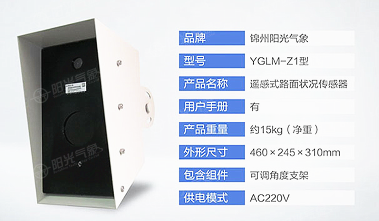 YGLM-Z1型激光遙感式路面狀況傳感器是由錦州陽光公司自主研發(fā)的路面狀態(tài)測量儀器,其采用進口激光傳感器,遙感式測量技術檢測路面狀況,可以有效的提高道路交通的安全指標。該傳感器只需遠距離安裝在路邊的立柱上就可以進行檢測,這種非侵入式的檢測方式意味著無須像傳統(tǒng)的埋入式傳感器一樣安裝時破壞路面、封閉交通。
